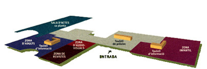 La biblioteca està distribuïda en dues sales principals: la d'adults i la d'infants. En cadascuna d'elles hi trobareu: