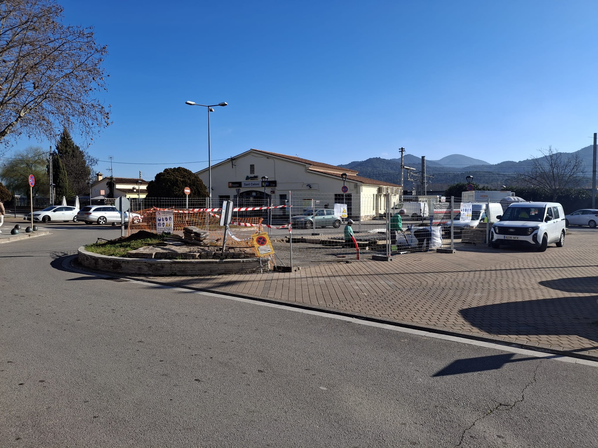 Inici de les obres per instal·lar un aparcabicicletes tancat a la plaça de l'Estació
