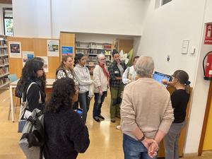 Una desena d'alumnes del curs Bàsic 2 de català per a adults de l'Oficina de Català de Sant Celoni ha participat en una visita guiada a la Biblioteca l’Escorxador, per conèixer de primera mà els recursos que ofereix aquest equipament.