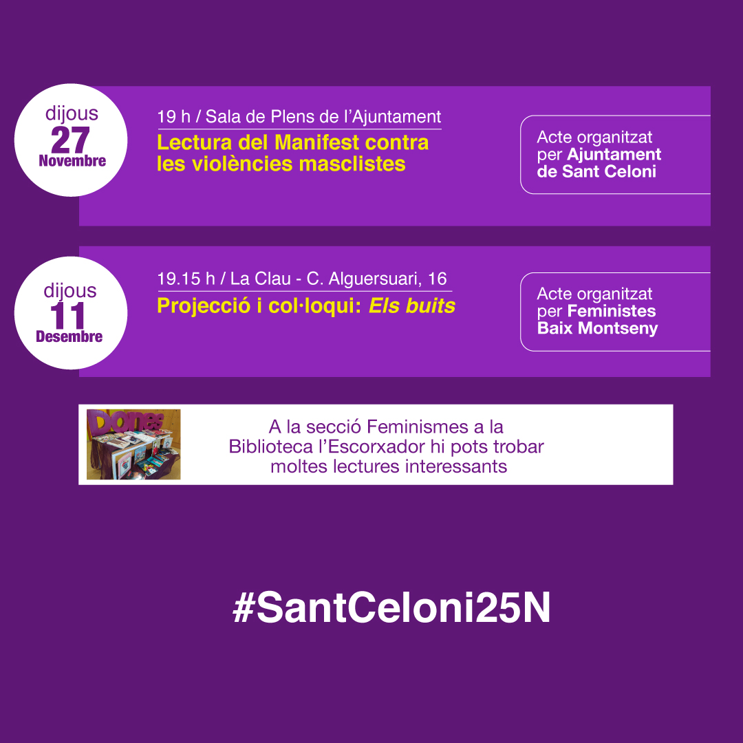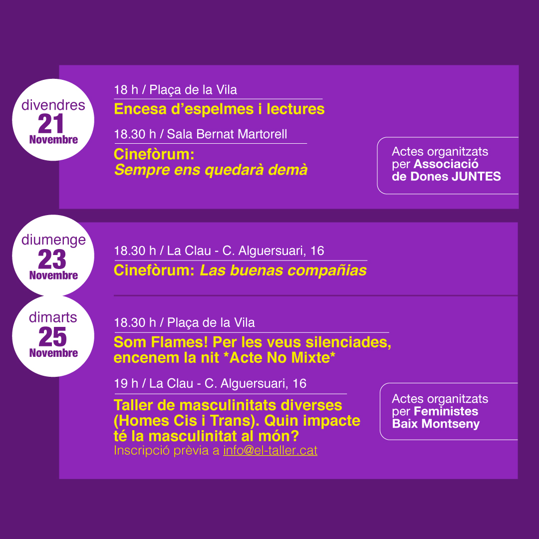 El 25 de novembre es commemora el Dia Internacional per a l'Eliminació de la Violència envers les Dones.
