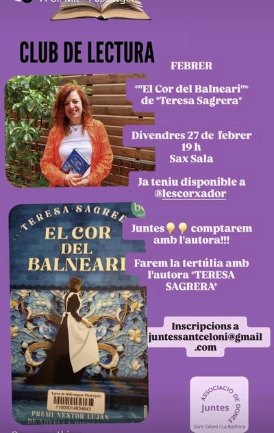 El Club de lectura de l'Associació Dones Juntes, farà aquest mes la tertúlia literària del llibre El Cor del Balneari amb l'autora Teresa Sagrera.