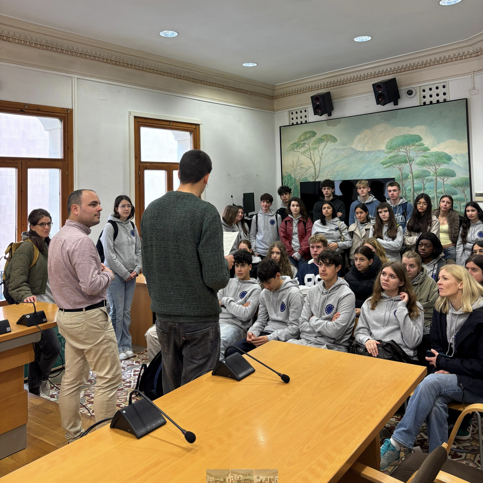 La recepció institucional es va celebrar a la sala de plens i va estar presidida per l’alcalde de Sant Celoni, Eduard Vallhonesta, i el regidor d’Educació, Albert Planas. L’alumnat participant, de 3r i 4t d’ESO, participa aquests dies en una estada d’intercanvi de sis dies que inclou diverses activitats educatives i culturals.