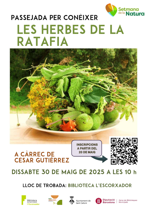 Cèsar Gutiérrez ens guiarà per l'entorn de Sant Celoni per conèixer les herbes de la ratafia.   cartell passejada ratafia