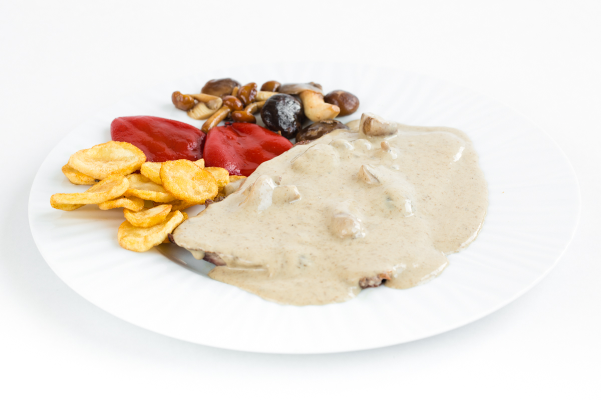 2. Bistec recobert de bolets d'Extraños en un tren de Patricia Highsmith a la Braseria La Llar.