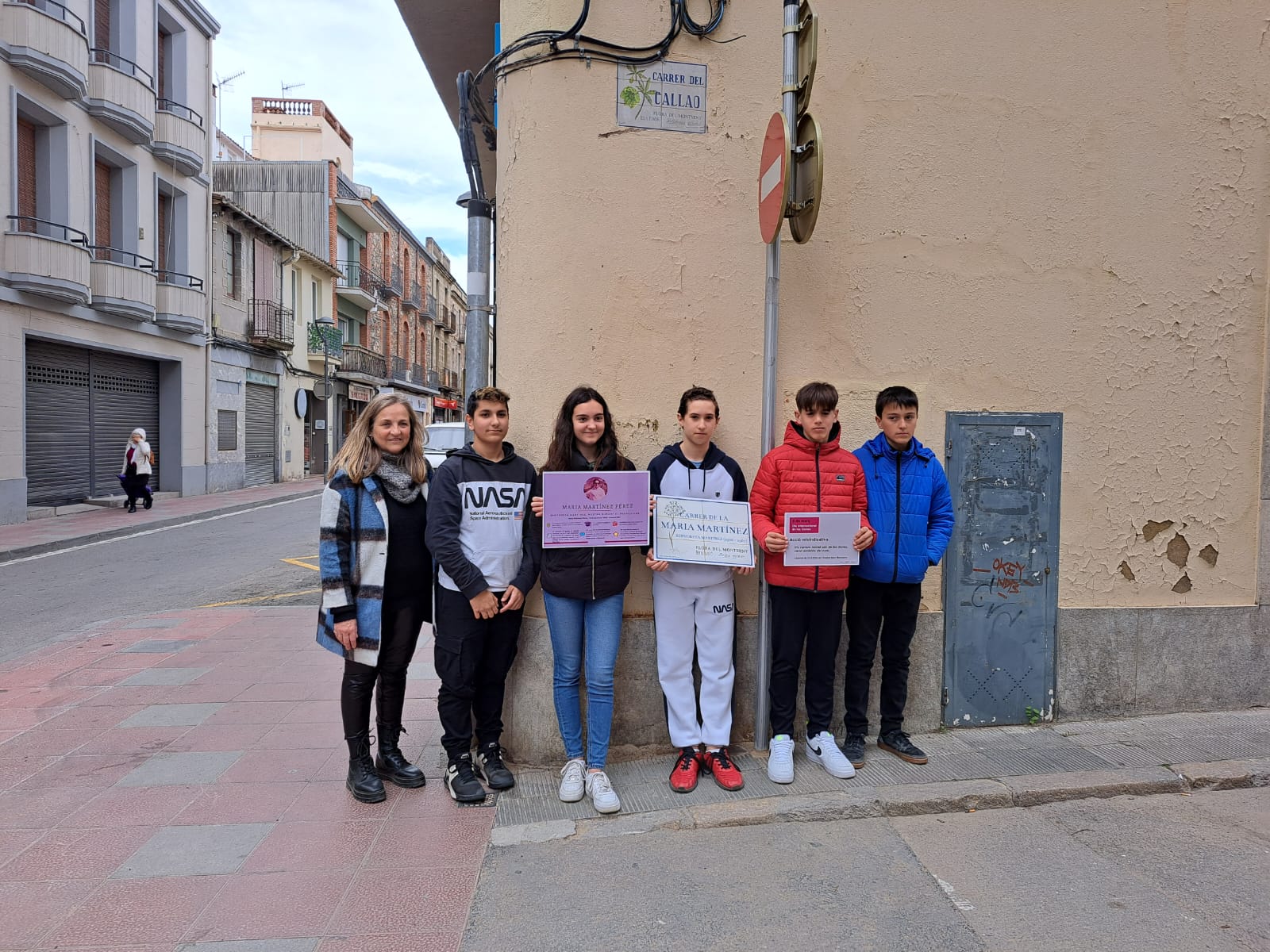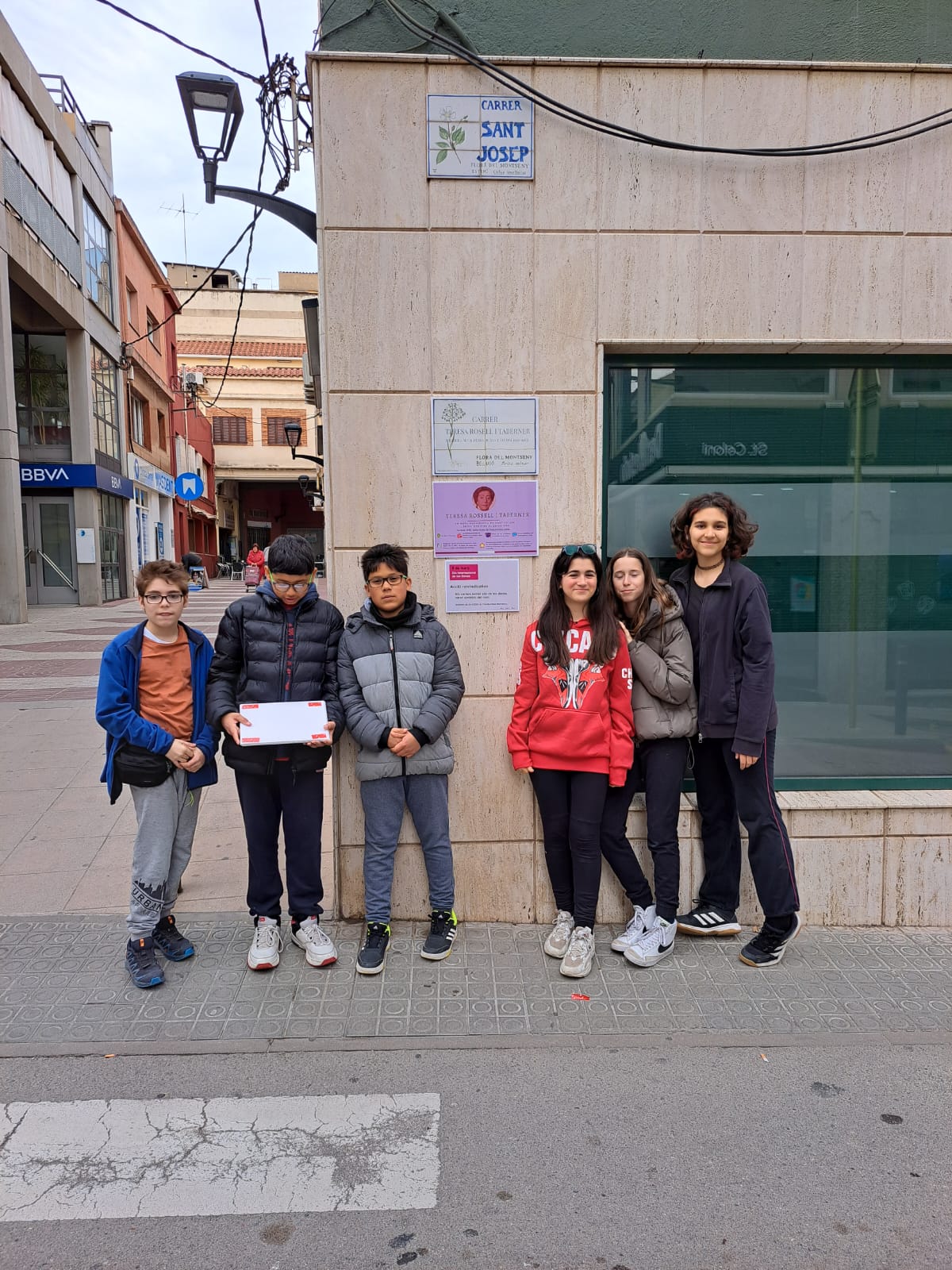 Alumnes de l'Institut Baix Montseny han commemorat aquest dimecres dia 8 de març el Dia Internacional de les Dones amb un canvi simbòlic del nom de diversos carrers i una pintada de murals reivindicatius a la plaça de la Vila.
