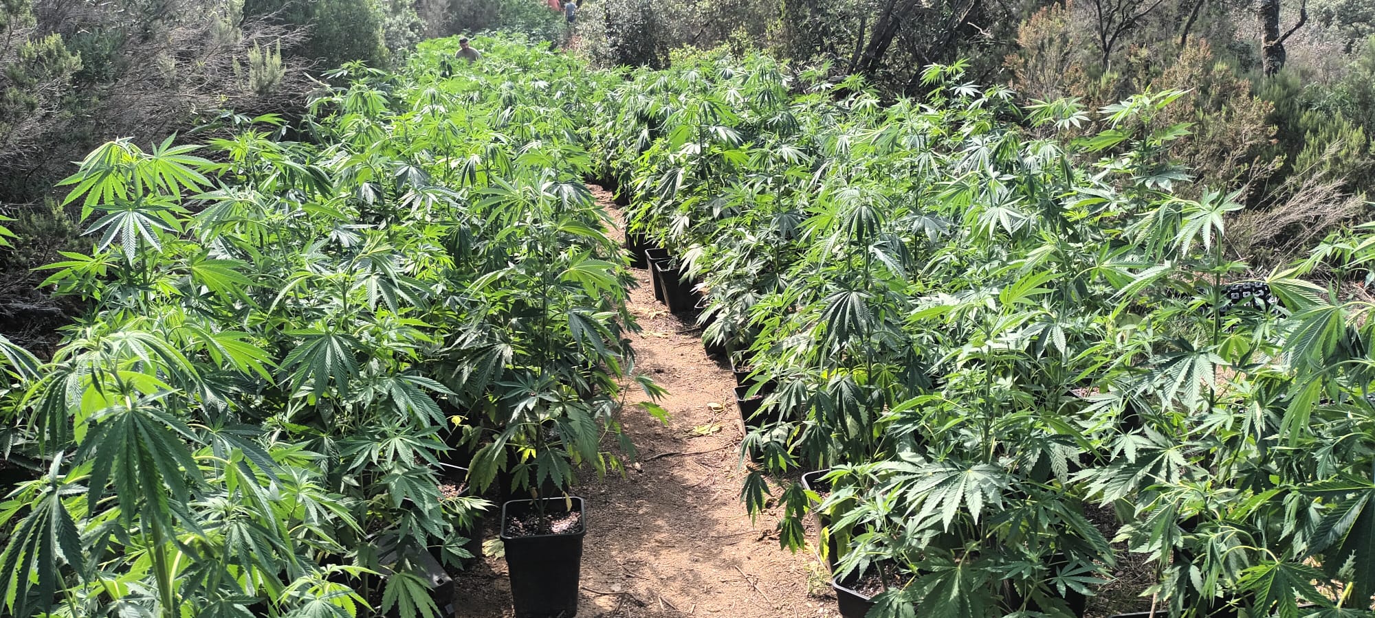Els Mossos d'Esquadra amb la col·laboració de la Policia local de Sant Celoni han desmantellat aquest matí una plantació amb 950 plantes de marihuana al barri de Penyes, en una zona boscosa més amunt de Can Minuart. Les plantes s'han traslladat a la comissaria dels Mossos d'Esquadra.