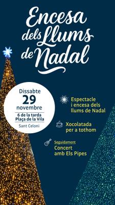 No us perdeu l'espectacle d'encesa dels llums de Nadal que tindrà lloc el dissabte 29 de novembre de 2025 a les 6 de la tarda a la plaça de la Vila. L'acte també comptarà amb xocolatada per a tothom i el concert amb Els Pipes.