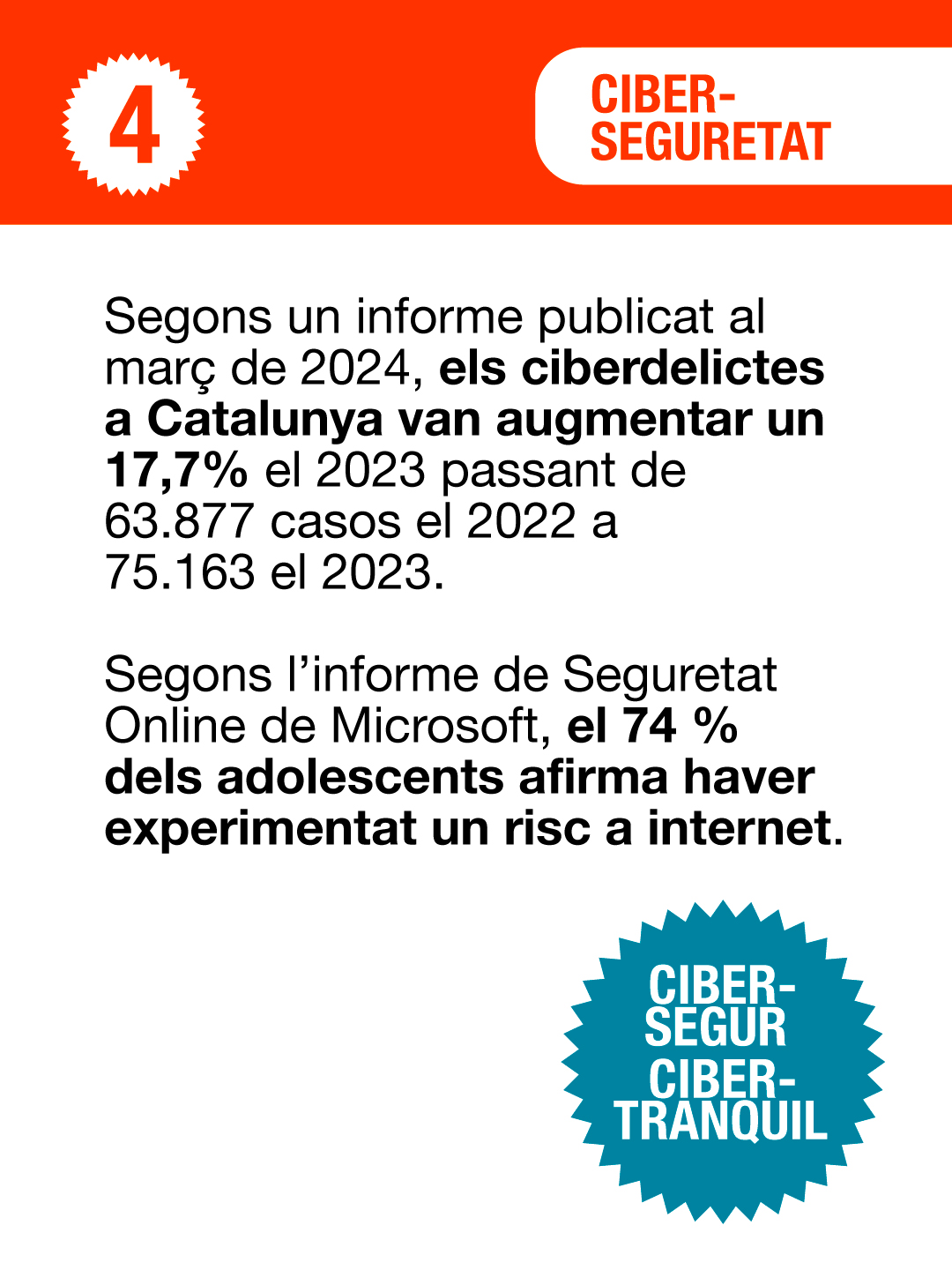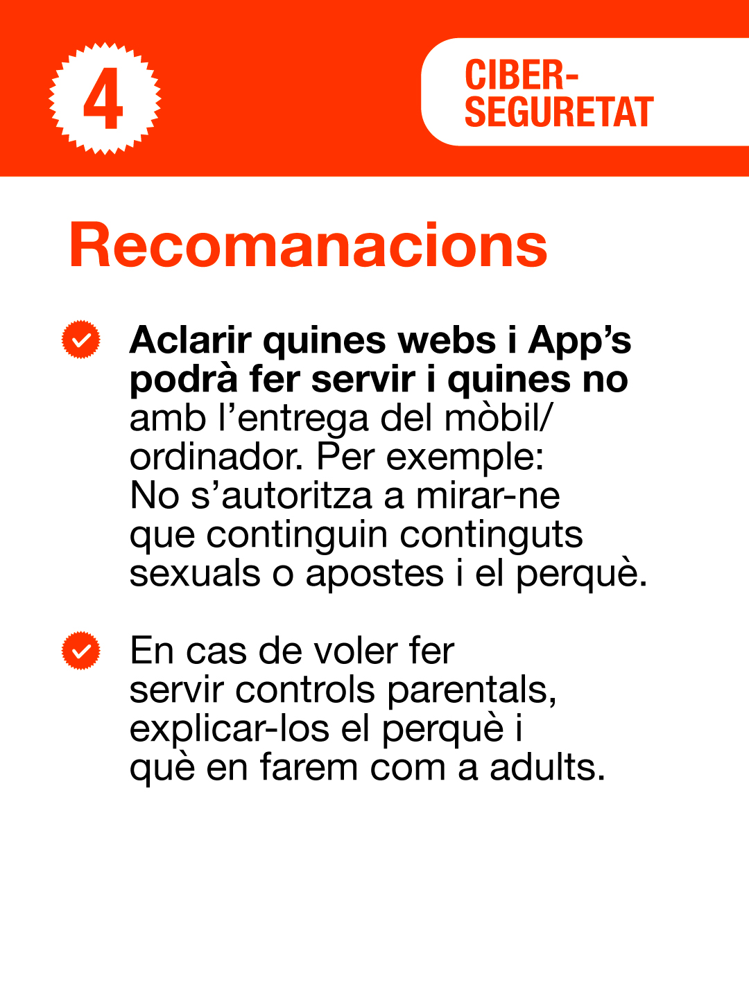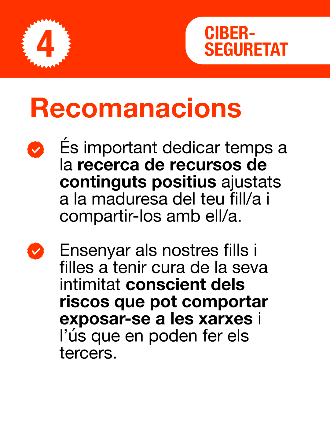 La ciberseguretat centra el quart repte de la Campanya de sensibilització sobre l'ús de les pantalles a partir d'una pregunta inicial: Digues el nom de 3 youtubers que segueixi el teu fill/a. No en coneixes cap? T'has plantejat posar control parental?