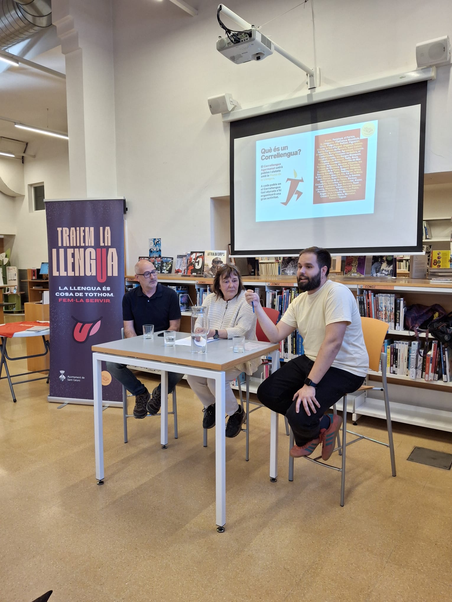 Durant l'acte de presentació a la Biblioteca, la regidora de Política Lingüística, Montserrat Sendra, va presentar el lema de foment de l'ús de la llengua al municipi: “Traiem la llengua. La llengua és cosa de tothom. Fem-la servir" que s'anirà fent present en diversos moments clau de la vida del municipi: per la Festa Major, per Sant Martí, per Gitanes, per Carnestoltes i, aquest mes, per Sant Jordi.