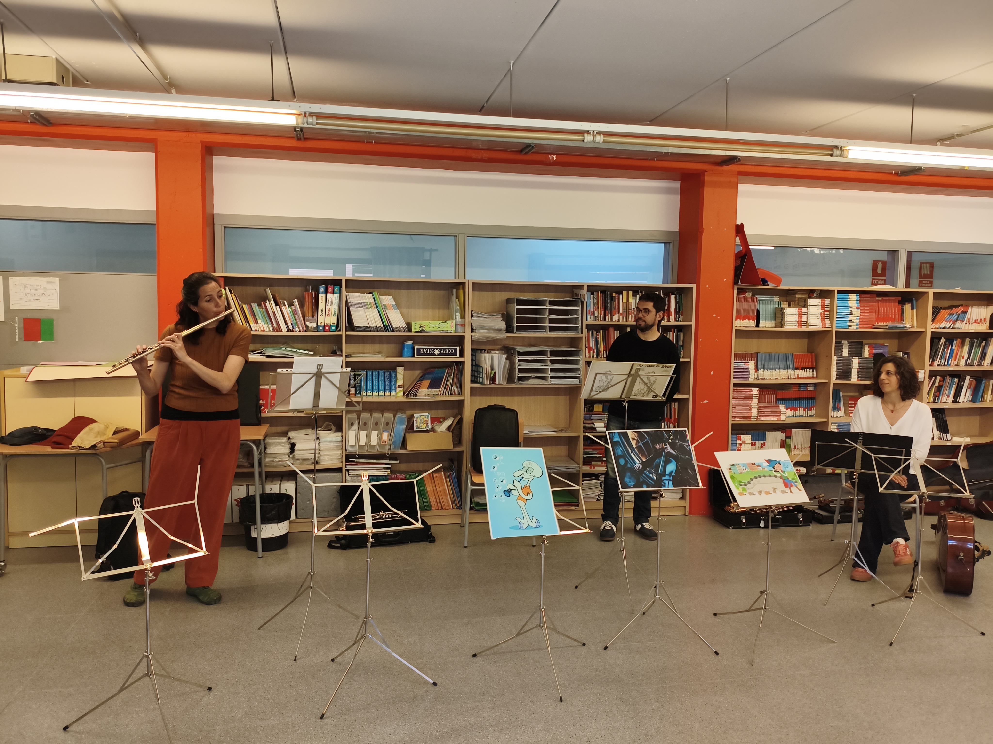 Els escolars han pogut veure i escoltar en directe, en un format proper i dinàmic fins a 6 instruments: violí i violoncel, trompeta, clarinet, saxo i flauta travessera. Cada instrument estava representat per un personatge conegut entre el món dels infants.