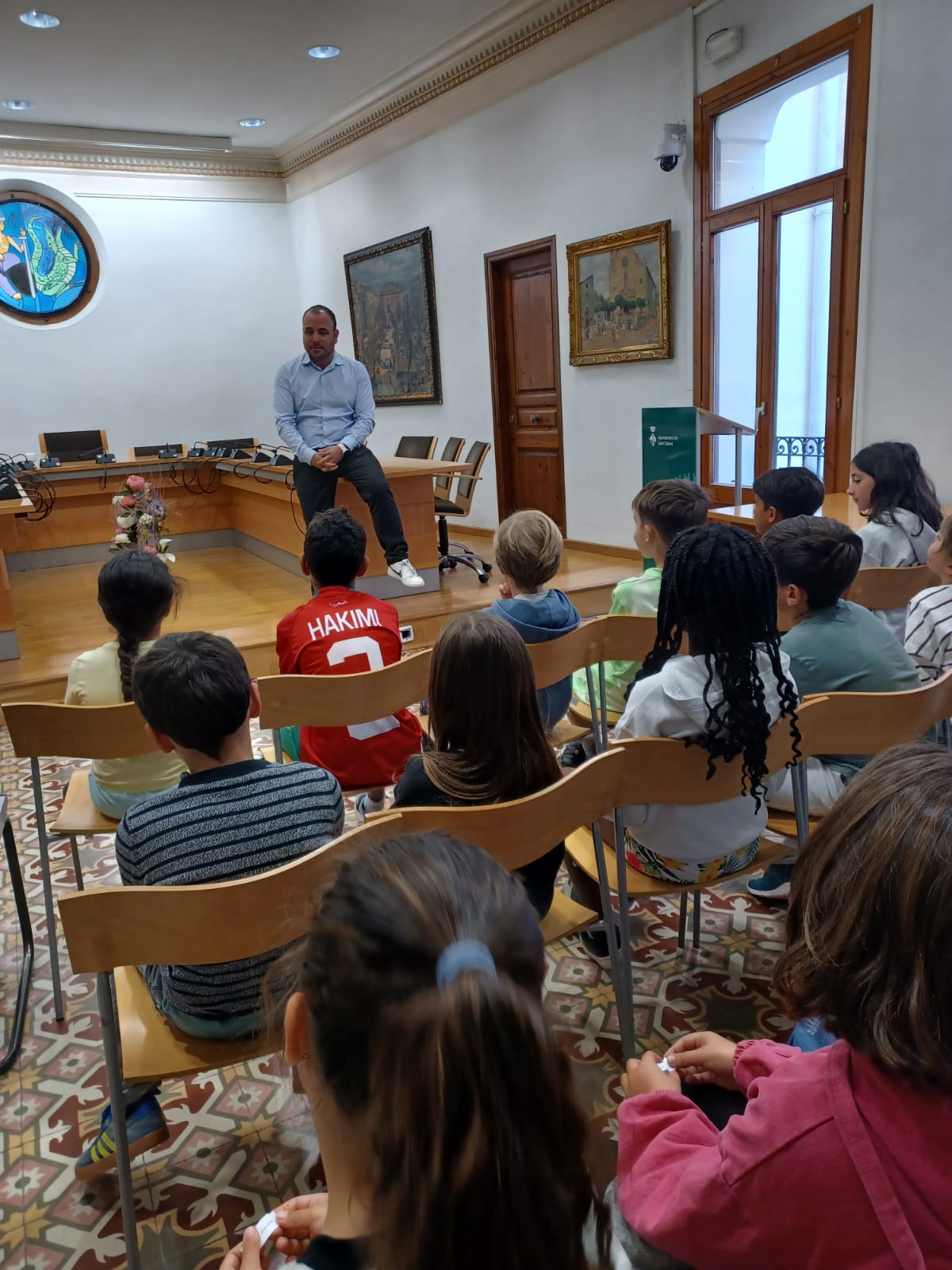 Aquests divendres l'alumnat de 3r de Primària de l'Escola l'Avet Roig i de l'Escola Cor de Maria han visitat la Casa de la Vila per conèixer el seu funcionament i entrevistar l'alcalde Eduard Vallhonesta.